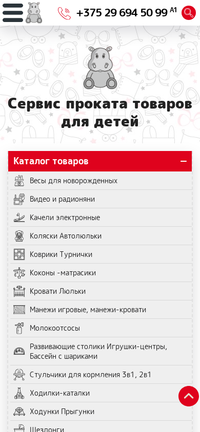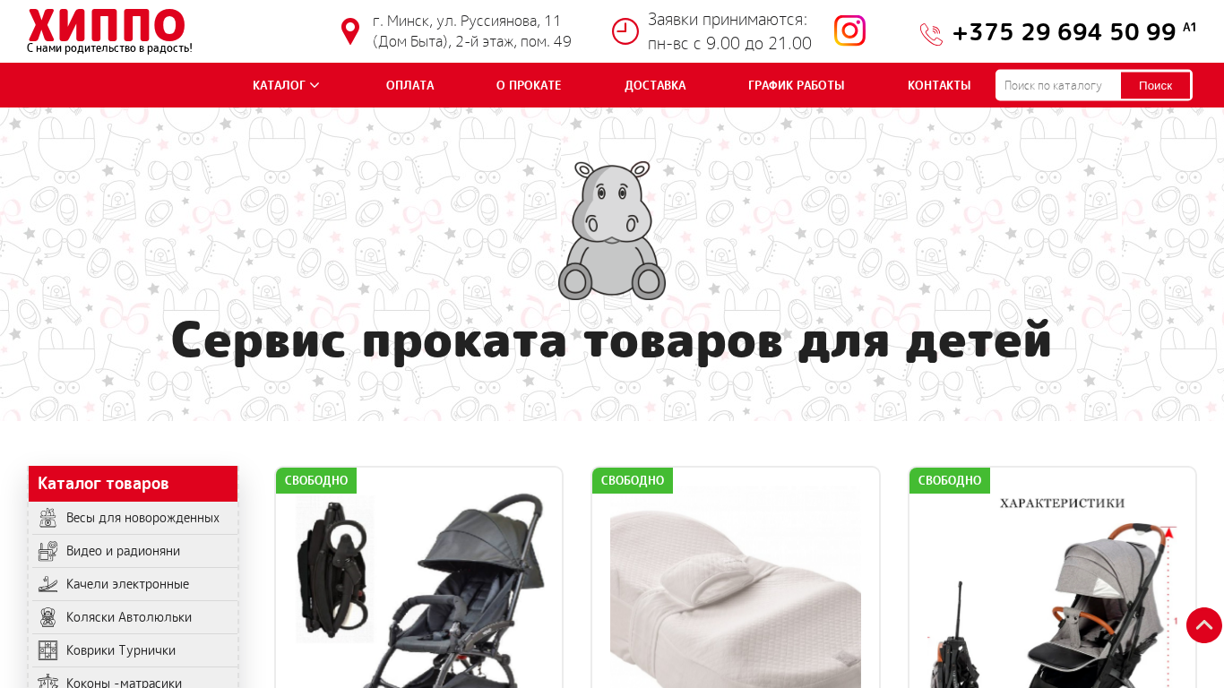| AI-анализ | --- This website is a children's rental service titled "ХИППО С нами родительство в радость!" (Hippo With Us Parenting in Joy!) located in Minsk, Belarus. The service offers various items for rent such as baby scales, video monitors, rocking chairs, baby beds, cribs, feeding chairs, walkers, swings, baby bottles, and developing tables. The website includes a catalog section with detailed information and images of the offered products, including brands like Chicco, Babyton, Mamaroo, Reer, and Laica. The catalog also features electronic baby scales, video monitors, and rocking chairs. The service accepts orders from Monday to Sunday from 9:00 to 21:00 and can be contacted at +375 29 694 50 99. The |