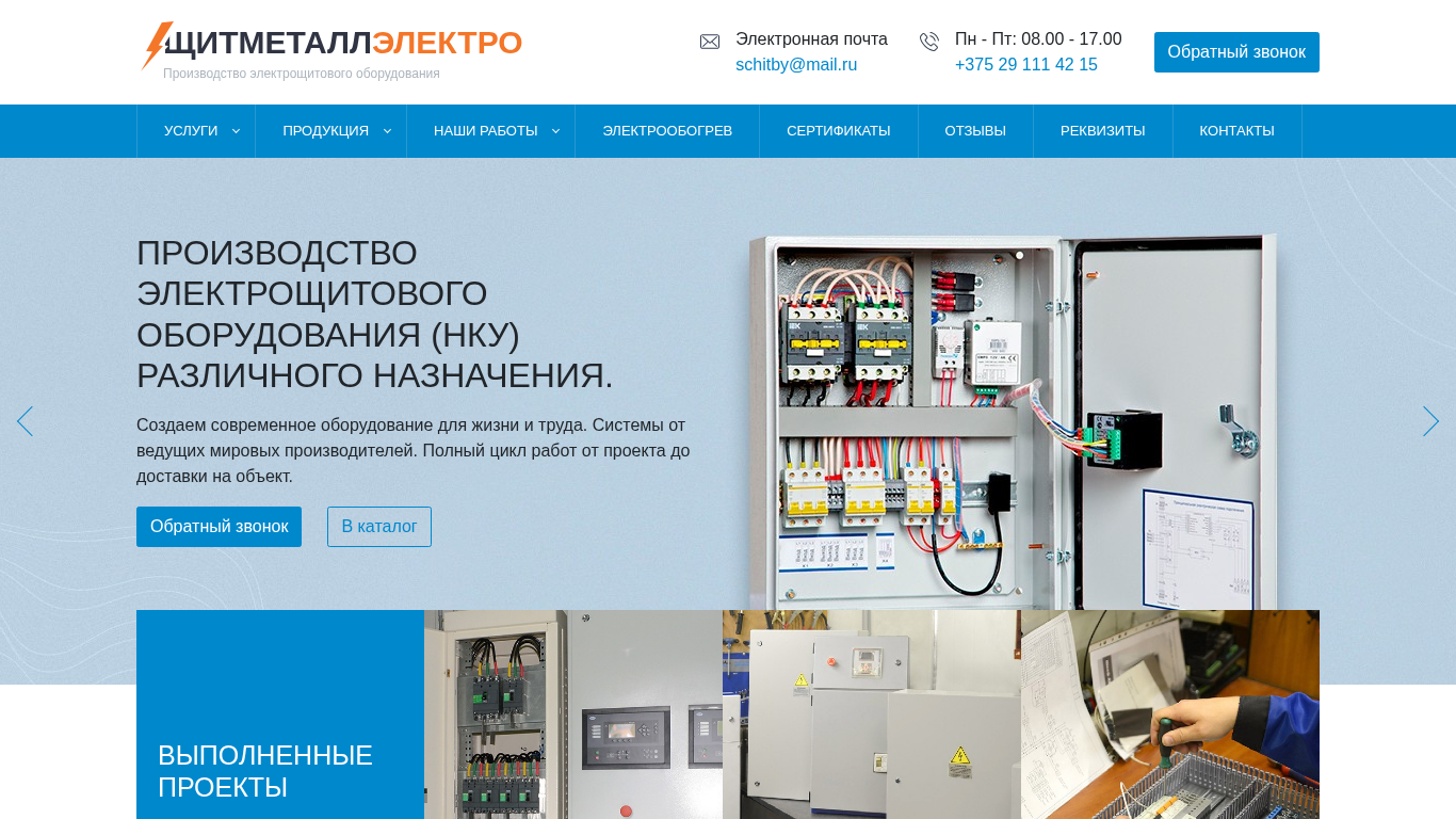 | SEO-описание | Мы производим электрощитовое оборудование в Беларуси по типовым и индивидуальным схемам, предоставляя своим клиентам надежные шкафы |