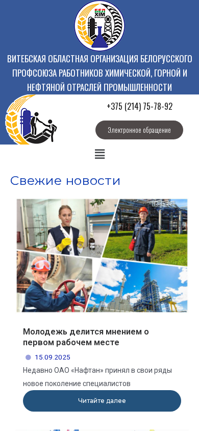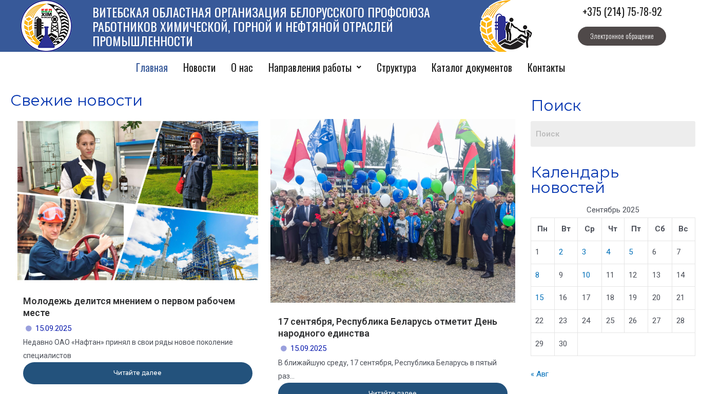 | Название / Заголовок | Главная - Витебская областная организация Белорусского профсоюза работников химической, горной и нефтяной отраслей промышленности |