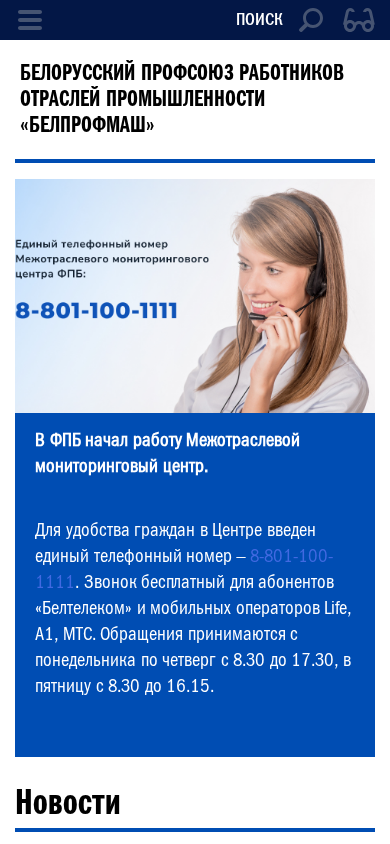 | Название / Заголовок | Главная - БЕЛОРУССКИЙ ПРОФСОЮЗ РАБОТНИКОВ ОТРАСЛЕЙ ПРОМЫШЛЕННОСТИ «БЕЛПРОФМАШ» |