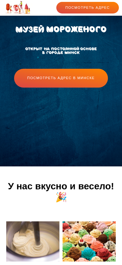 | AI-анализ | The website is for the Ice Cream Museum located in Minsk, Belarus. It provides information about the museum, its location, and various activities and exhibits. Visitors can learn about the process of ice cream production, including soft, live, and fried ice creams, as well as gelato. The museum offers tasting sessions for these different types of ice creams, including a chocolate fountain zone and experimental and educational exhibits. Additionally, there are play areas and sweet masterclasses for children. The website includes the museum's address in Minsk and contact information for OOO "Divian Iko" with UNP 193760445. |