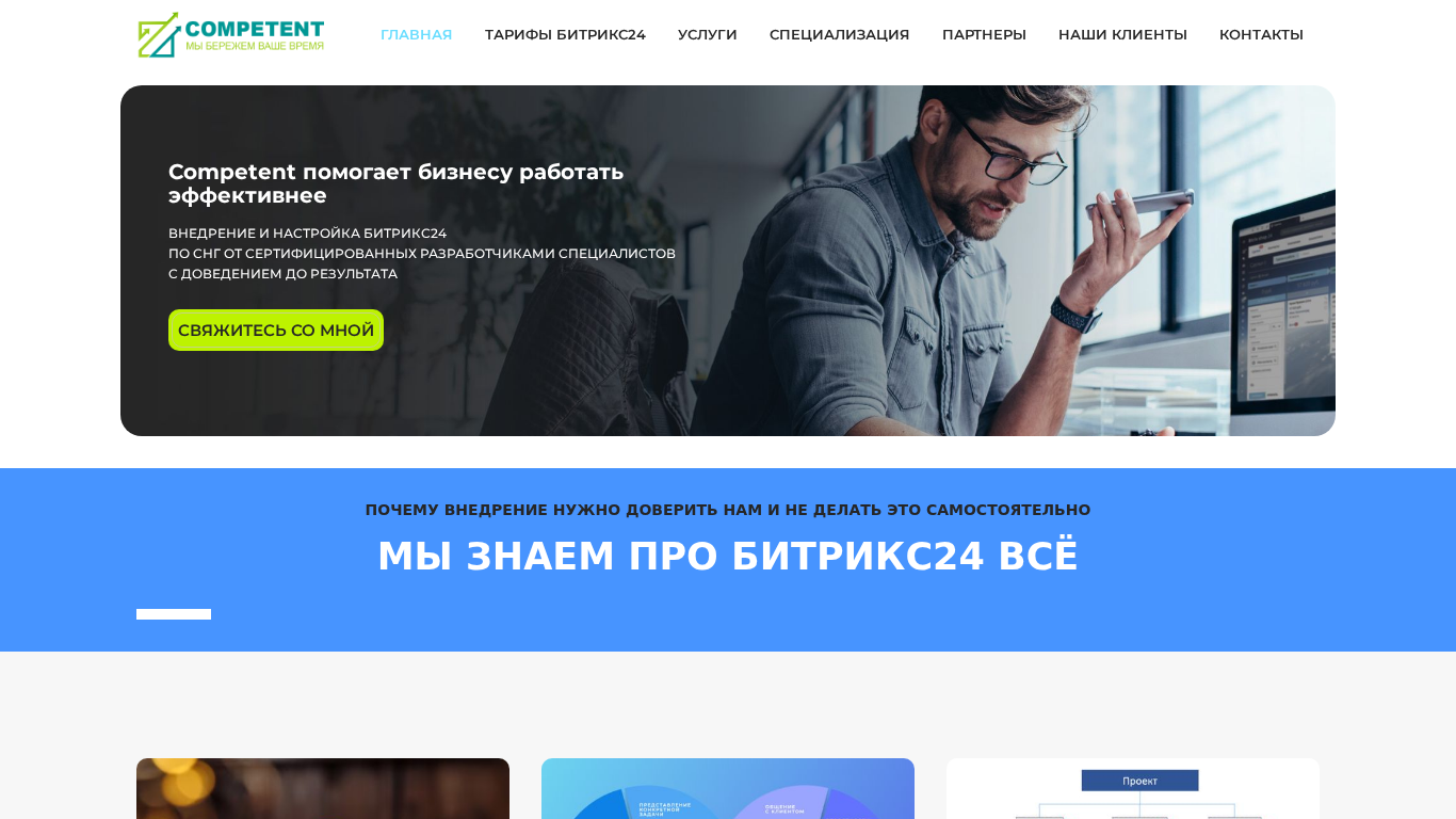 | AI-анализ | --- This online resource is a professional Bitrix24 implementation service offered by a Gold Partner. The website aims to help businesses optimize processes, create a controlled accounting system, and view all key performance indicators in one click. It also offers solutions for setting up telephony and integrating Bitrix24 with a payment system. The website contains information about Bitrix24, open lines, CRM, business processes, telephony, implementation, and support. The top words used on the site include 'Bitrix24', 'byn', 'внедрение', 'работы', 'crm', 'компании', and 'процессы'. The domain is competent.by. |