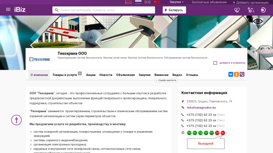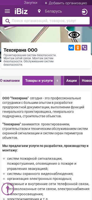 | Название / Заголовок | Техохрана ООО - Проектирование систем безопасности. Монтаж сетей связи. Монтаж систем безопасности. Обслуживание систем безопасности. . 230025, Гродно, Павловского, 19 |