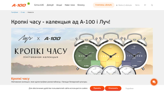 | SEO-описание | Вашай увазе лімітаваная калекцыя гадзіннікаў Кропкі часу ад А-100 і Луч! ✔ Сетка аўтазаправачных станцый А-100 |