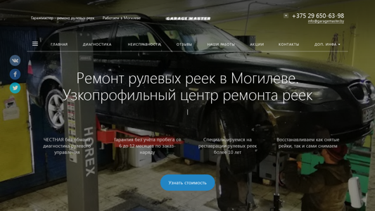 | SEO-описание | Гаражмастер - специализированный автосервис по ремонту и диагностике рулевых реек в Могилеве. Работаем честно, низкие цены и официальная гарантия на восстановленные рейки |