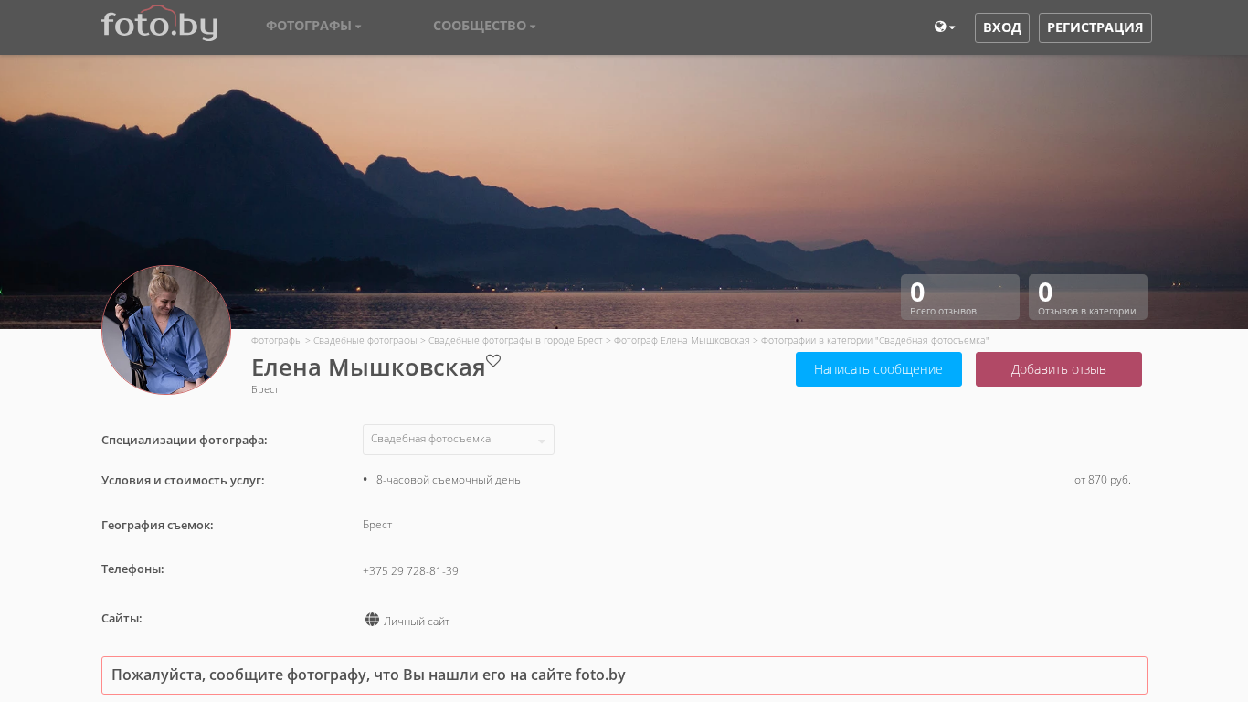 | SEO-описание | Фотографии в категории "Свадебная фотосъемка". Сайт фотографа Елена Мышковская. Я работаю как фотограф для индивидуальной и семейной фотосъемки в городах Брест, Каменец, Малорита, Жабинка, Кобрин |