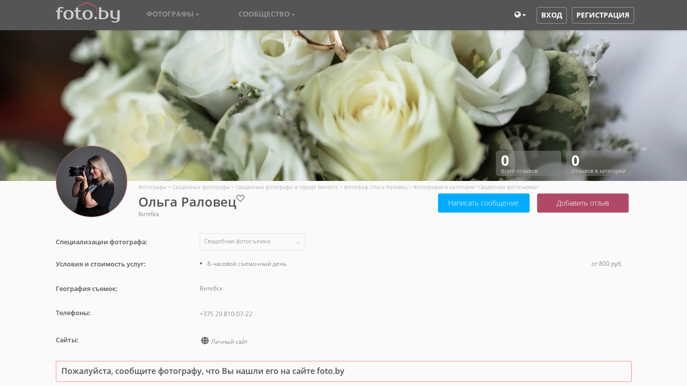 | SEO-описание | Фотографии в категории "Свадебная фотосъемка". Сайт фотографа Ольга Раловец. Я работаю как свадебный фотограф в городах Витебск |