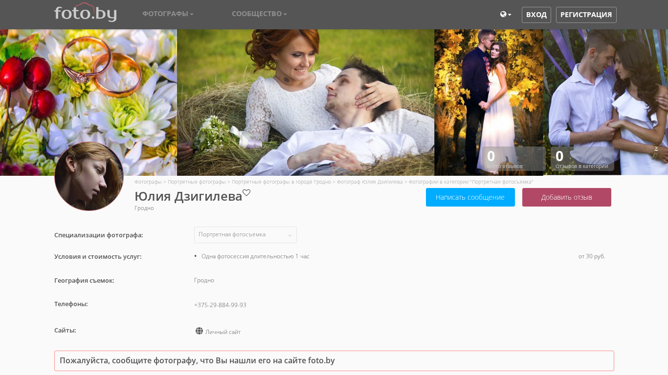 | SEO-описание | Фотографии в категории "Портретная фотосъемка". Фотограф Юлия Дзигилева - выполняю следующие виды фотосъемок: love story, портретная фотосъемка, предметная фотосъемка. Работаю в городах: Гродно |