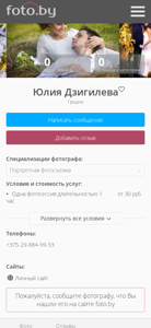 | AI-анализ | The web project "Yulia Dzighileva Photography, Grodno" is a portfolio website showcasing the work of photographer Julia Dzighileva specializing in portrait photography. The website includes categories for "Love Story" and "Portrait Photography" and indicates that the photographer also offers "Subject Photography." The project is based in the city of Grodno. |
