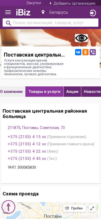 | Название / Заголовок | Поставская центральная районная больница - Услуги консультации врачей, специалистов, массаж, ультразвуковая и функциональная диагностика; профилактические осмотры; гинекология, лучевая диагностика.. 211875, Поставы, , Советская, 73 |