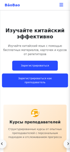 | AI-анализ | The website "Baobao.by" is a language learning platform focused on teaching Chinese. It offers various features for users to learn effectively, including free materials, interactive flashcards, textbooks, and structured courses from experienced teachers. Users can register as students or teachers and track their progress. The homepage includes sections for free courses, structured courses, interactive flashcards, and textbooks. The website also features a chat function and personalized learning plans. Users can search for flashcards based on HSK levels and various topics such as numbers, family, and restaurants. The overall design is user-friendly and aims to provide a personalized learning experience for those interested in studying Chinese. |