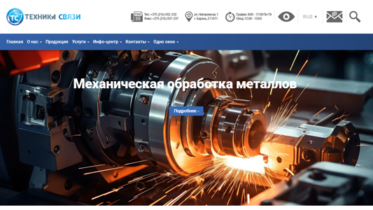 | AI-анализ | The web project "ОАО "Техника связи" (T-C) is a Belarusian company specializing in the development, production, and sales of digital and analog radio communication systems in the KV and UHF frequency ranges, as well as telecommunication equipment for wired communication lines. The company also offers custom manufacturing services and metalworking. The website contains news, information on vacancies, products, services, and contacts. The main language is Russian, but there are options for Belarusian, English, and other languages. The office hours are from 8:00 to 17:00, Monday through Friday, with a lunch break from 12:00 to 13:00. The contact information includes a phone number, fax number, and email address. The website includes sections for contact information, a telephone directory, a form for request |