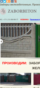 | AI-анализ | The web project "Zabor Beton" is a Minsk-based manufacturer and seller of concrete barriers, offering a range of products such as concrete walls, gates, fences, and pavement blocks. The website provides detailed information on their production process, prices, and recent projects, showcasing various types of concrete barriers and their installation. The site also features a contact number and information on ordering and installation services. |