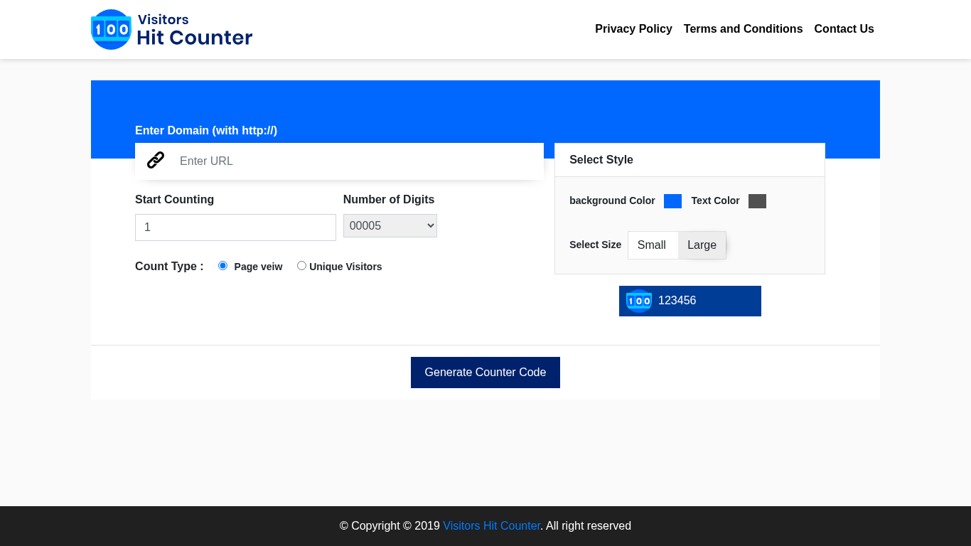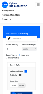 | AI-анализ | This online resource offers website visitor counter services using Exact, Click Counter, and Online number counter tools. The website allows users to count traffic by the number of visitors hitting their website, with options to select the counter style, background color, text color, and size. The counter code can be generated and copied to the user's website for implementation. The service provides privacy policy, terms and conditions, and contact information for users. The domain for this resource is visitorshitcounter.com. |