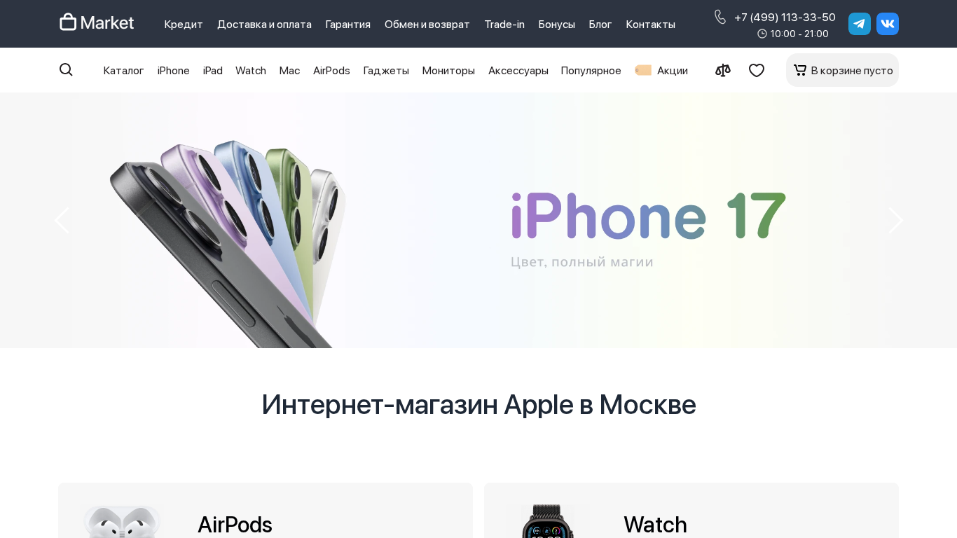 SEO-описание | Интернет-магазин Apple-market.ru - это большой выбор оригинальной техники Apple (iPhone, iPad, iWatch, iMac, AirPods, а также гаджеты Эппл) по низким ценам. Доставка по Москве и МО. Тел: +7 (499) 113-33-50 |