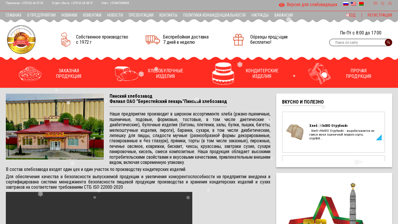 | Название / Заголовок | Пинский хлебозавод филиал ОАО «Берестейский пекарь» — Пинский хлебозавод |