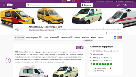 | AI-анализ | The website is a production and sales platform for specialized vehicles, buses, portable laboratories, ambulances, and armored vehicles for cash-in-transit operations in Belarus. The company, named "Автомобильные конструкции ООО," is located in Minsk, Melezh, 5/2, office 904. They offer a wide range of vehicles based on Gaz, Uaz, Maz, Man Tge, Ford, Fiat, Citroen, Volkswagen, Renault, Mercedes, Iveco, and other brands. They produce vehicles for educational, medical, and industrial organizations. The assortment is constantly expanding, and the company designs, certifies, and sells the vehicles itself. Currently, "Автомобильные конstruкции ООО" converts fully metallic vans under the brand |