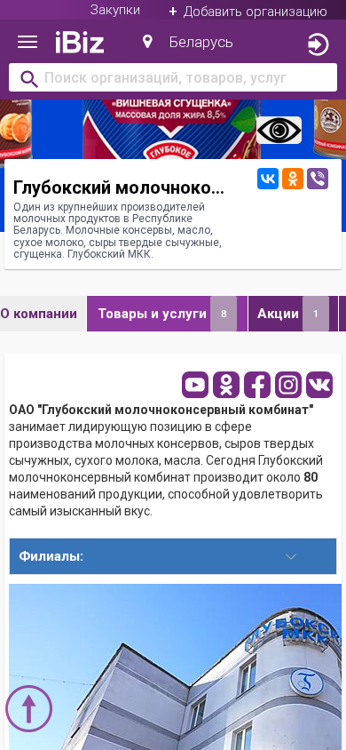 | Название / Заголовок | Глубокский молочноконсервный комбинат ОАО - Один из крупнейших производителей молочных продуктов в Республике Беларусь. Молочные консервы, масло, сухое молоко, сыры твердые сычужные, сгущенка. Глубокский МКК.. 211793, Глубокое, , Ленина, 131 |