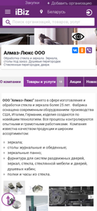 | AI-анализ | --- The web project "Almaz-Lux OOO" specializes in glass and mirror processing. They offer mirrors, custom-made tables, shower partitions, and glass partitions, doors. The company is located in Bobruisk, Belarus, at the address Спартаковская, 7, к. 2. It has been in the business of glass and mirror production for over 25 years, utilizing modern equipment from the USA, Italy, and Germany. The products are made using the latest technologies, and all processes are controlled by experienced and skilled workers. Almaz-Lux OOO is known for its high-quality items and extensive product range, which includes mirrors, journal and dining tables, mirror panels, fittings for sliding door systems, glass furniture and doors, and shower cabins. The company holds the certificate of conformity to the SТБ ISO9001 |