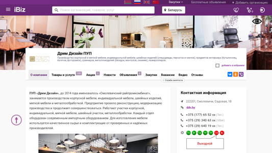 | AI-анализ | --- The web project "Dream Design PUP" is a manufacturing company located in Smolevichy, Belarus, at the address Садовая, 18. They specialize in the production of corporate and soft furniture, individual furniture, textile items (special clothing, gloves, and covers), interior items (bottle holders, trays, photo frames), souvenirs, metal items (benches, mangals, statues), and roller skis. The company was previously known as Smolevichy raypromkombinat and underwent reconstruction and modernization. It now operates units for corporate, individual, soft furniture, textiles, and metal processing. All departments are equipped with modern import machinery. The company uses high-quality raw materials and components from reliable suppliers for manufacturing. Dream Design PUP produces: Corporate furniture; Soft furniture; Interior items; Metal items |