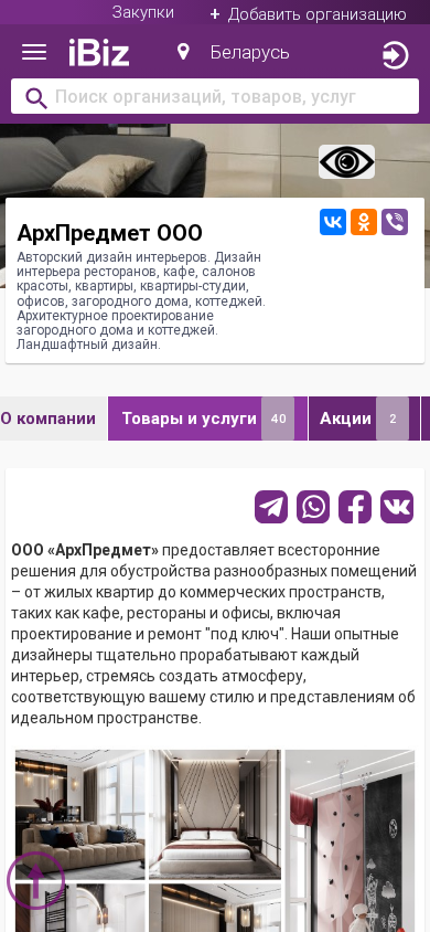 | AI-анализ | This online resource is a Belarusian company, ArhPredмет OOO, specializing in author interior design services. They offer design solutions for various types of spaces, from residential apartments to commercial establishments like cafes, restaurants, and offices. Their team of experienced designers meticulously plan each interior project, aiming to create an atmosphere that aligns with their clients' styles and visions of ideal spaces. The company handles all complexities of the renovation process, from sourcing suitable materials and optimizing layouts to repairing potential defects. Among their services are: design project creation, turnkey renovation, acceptance of completed housing, and problem resolution related to space reconfiguration. Additionally, they offer comprehensive private home design and technical supervision during construction. By collaborating with ArhPredmet OOO, clients receive a quality guarantee, cost savings, and reliability. Effective planning, detailed projects, and |