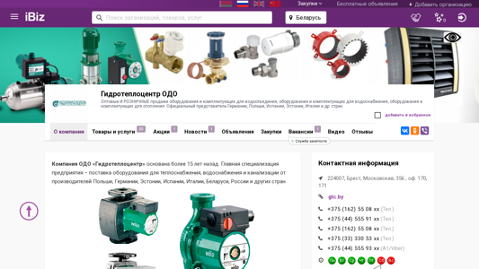 | AI-анализ | The website is a retail and wholesale sales platform for equipment and components for water supply, sewage, and heating. The company is the official representative of German, Polish, Spanish, Estonian, Italian, and other countries' manufacturers. It is located at Moskovskaya 356, office 170, 171, in Brest, Belarus. The website includes free classified ads for purchases, as well as information on the company, its products and services, and contacts. The main product categories are pumps and pumping equipment, water supply and sewage, heating, insulation materials, and sanitary works and equipment. The company, ODO «Гидротеплоцентр», was founded over 15 years ago and specializes in supplying equipment for heating, water supply, and sewage from Polish, German, Spanish, Estonian, Italian |