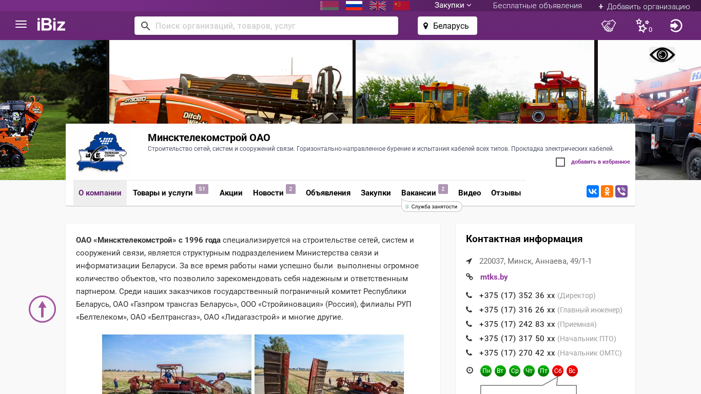 | AI-анализ | The website belongs to Minsktelecomstroy OAO, a Belarusian company that specializes in the construction of networks, systems and structures for communications. The company offers horizontal drilling and testing of all types of cables, as well as the laying of electrical cables. Minsktelecomstroy OAO was founded in 1996 and is a structural unit of the Ministry of Communications and Informatization of Belarus. The company has completed numerous projects, establishing itself as a reliable and responsible partner. Its clients include the State Border Committee of the Republic of Belarus, Gazprom Transgaz Belarus OAO, Stroyinovatsiya OOO (Russia), filial RUP Beltelekom, Beltransgaz OAO, Lidagazstroy OAO, and many others. Minsktelecomstroy OA |
