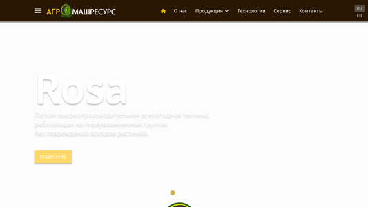 | SEO-описание | Компания Агромашресурс — производитель сельхозтехники ROSA. Самоходные опрыскиватели, разбрасыватели удобрений, машины мониторинга и системы точного земледелия. Надежность, инновации и качество для вашего успеха в сельском хозяйстве. |