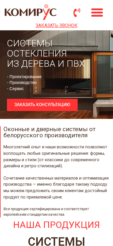 | SEO-описание | ОДО «Комирус-Техно» — производство оконных и дверных систем. Любые формы и цвета. Цены от производителя. Работаем с дилерами, застройщиками и архитекторами. |
