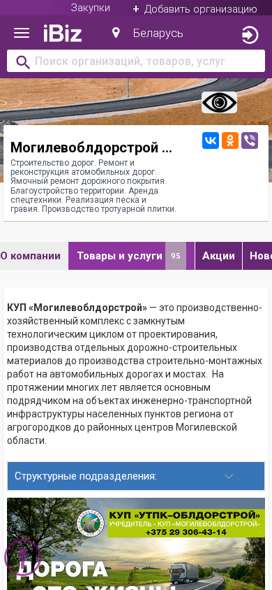 | AI-анализ | This online resource is dedicated to Могилевоблдорстрой КУП (Mogilevoblgorstroy CUP), a production-economic complex specializing in the entire technological cycle of road construction projects, from design and production of individual road-building materials to the execution of construction works on automobile roads and bridges in the Mogilev region. The company has been the primary contractor for infrastructure projects in various settlements, from agricultural communities to district centers, for many years. The organizational structure includes DRSU #59 in Mogilev (8-0222 73-54-63, drsu59@mogilev-ods.by), DRSU #126 in Klichev (8-02236 78-154, drsu126@mog |
