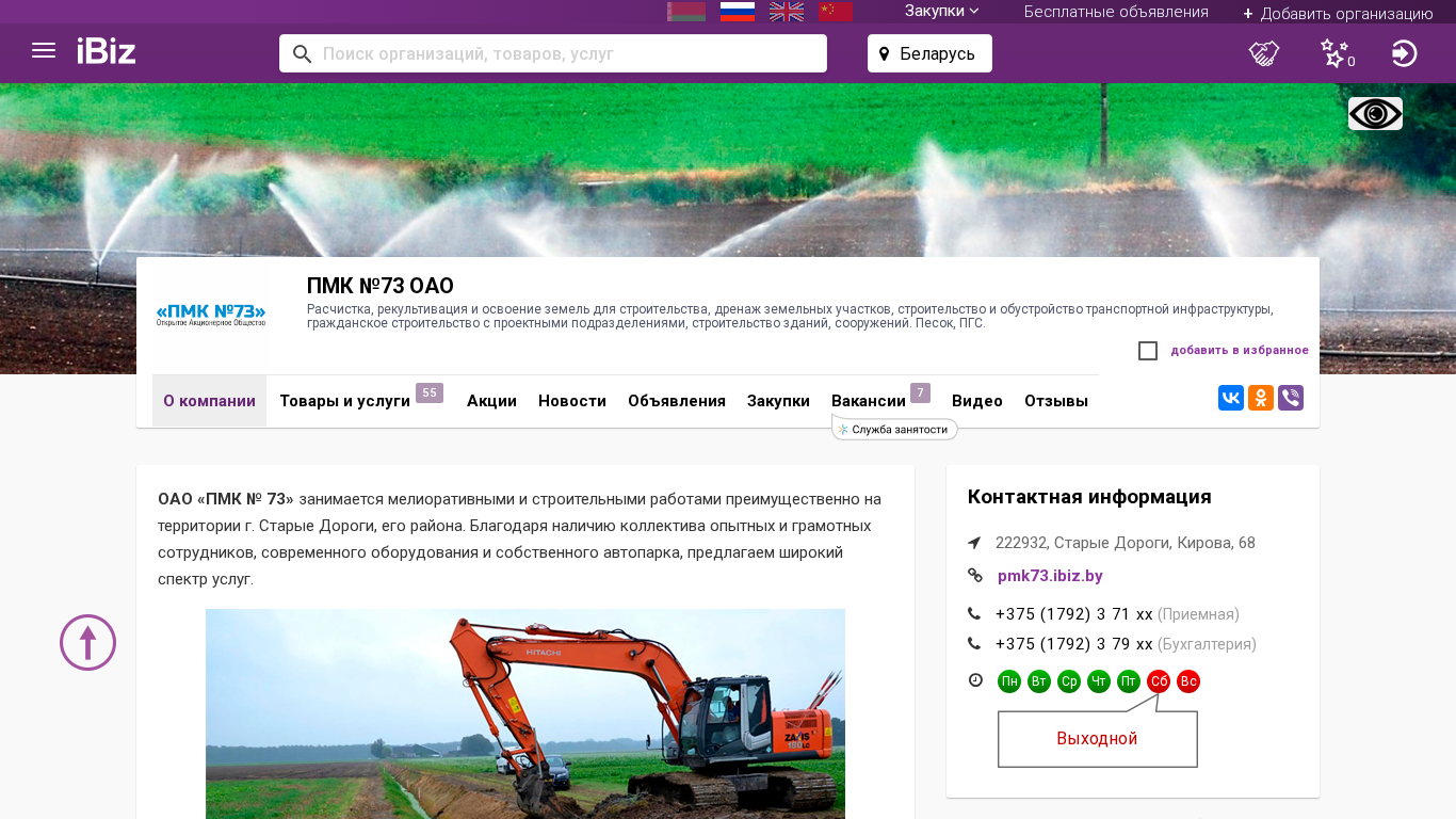 | AI-анализ | url: / This online resource is a website for OAO PMC №73, a company based in Starye Dorogi, Minsk, Belarus. The company specializes in land clearance, reclamation, and development for construction projects, as well as drainage of land areas, construction and improvement of transportation infrastructure, civil construction with project departments, building and construction of structures. The company offers sand and gravel. The website provides information about the company, its products and services, and includes sections for news, vacancies, and contacts. |