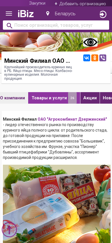 | Название / Заголовок | Минский Филиал ОАО Агрокомбинат Дзержинский - Крупнейший производитель куриных яиц в РБ. Яйцо птицы. Мясо птицы. Kолбасно-кулинарные изделия. Молочная продукция.. 223043, , Большевик пос. |