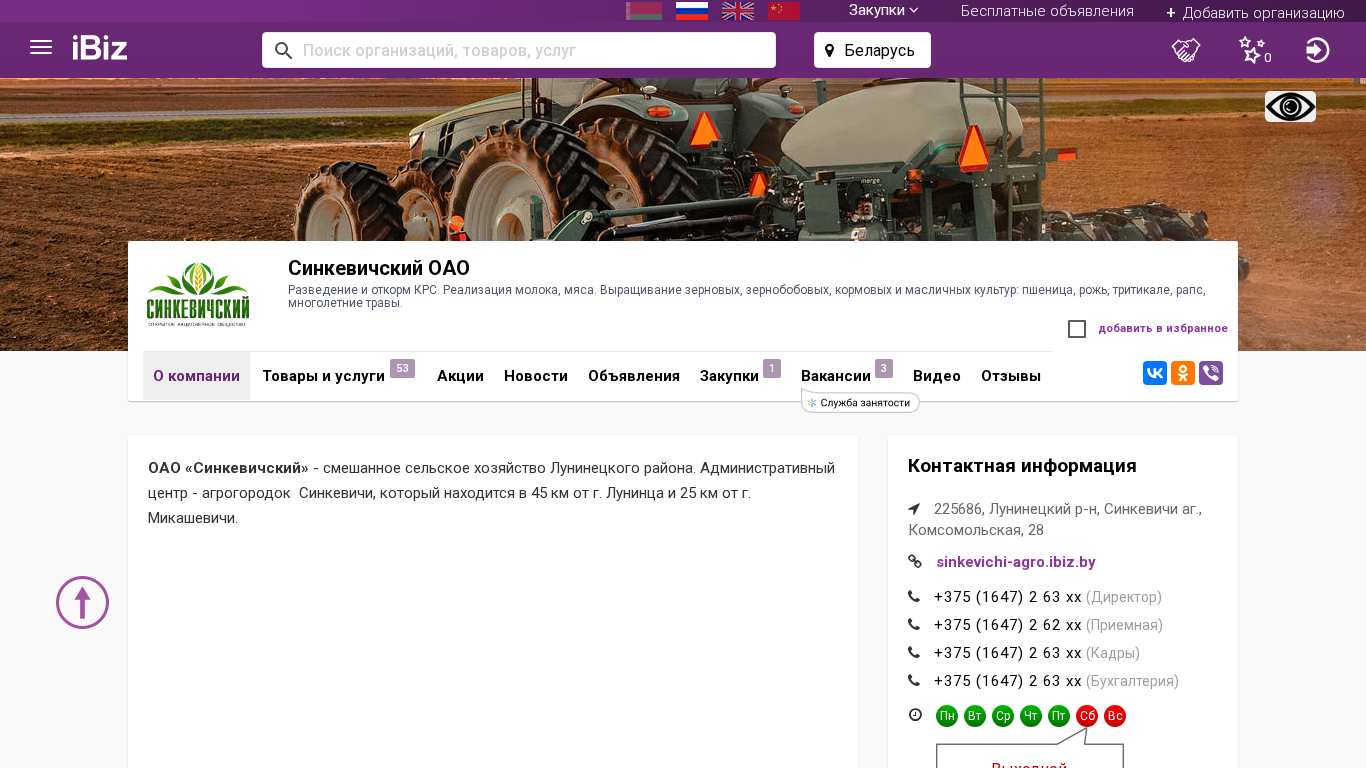 | Canonical URL | https://sinkevichi-agro.ibiz.by |
