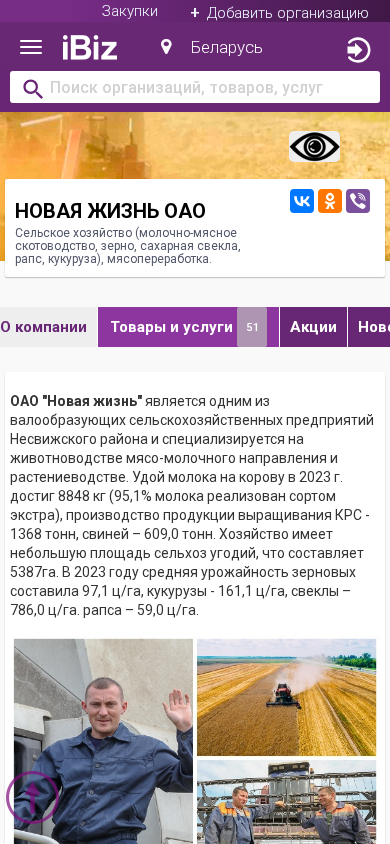 | Название / Заголовок | НОВАЯ ЖИЗНЬ ОАО - Сельское хозяйство (молочно-мясное скотоводство, зерно, сахарная свекла, рапс, кукуруза), мясопереработка.. 222602, , Оношки аг., Коммунистическая, 11А |