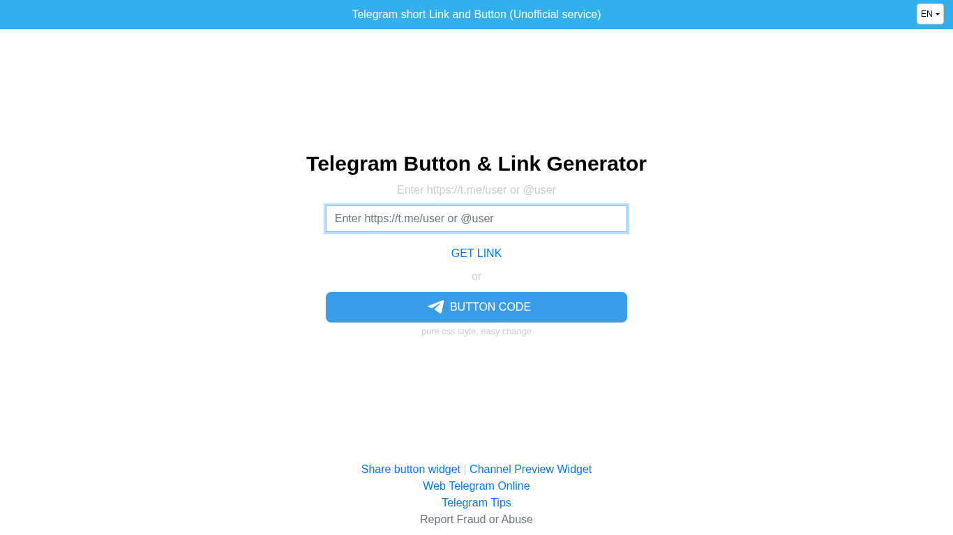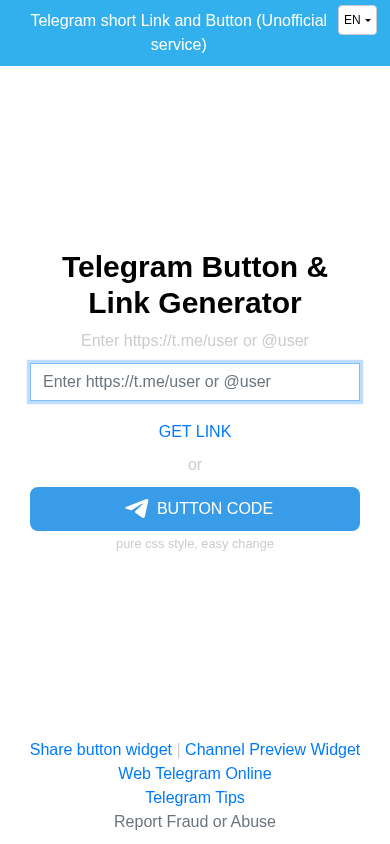 | SEO-описание | Create a short link or button to redirect to Telegram from the website |