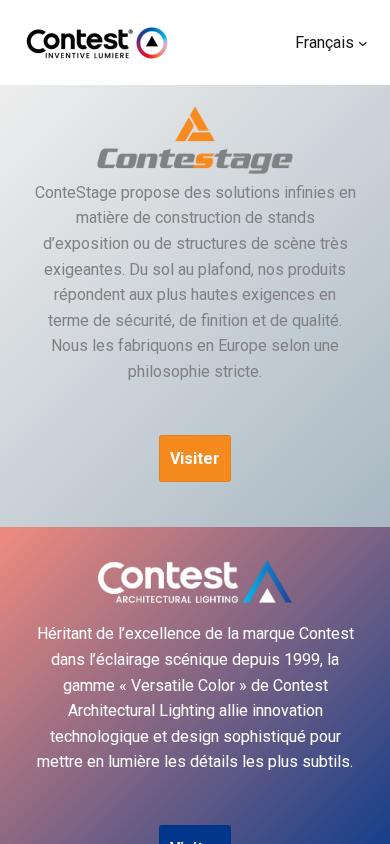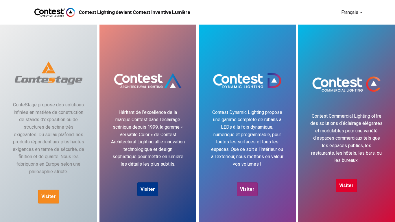 | SEO-описание | Contest Lighting devient Contest Inventive Lumière. Avec ses quatre univers, Contest Inventive Lumière s'impose comme votre partenaire européen de choix. |