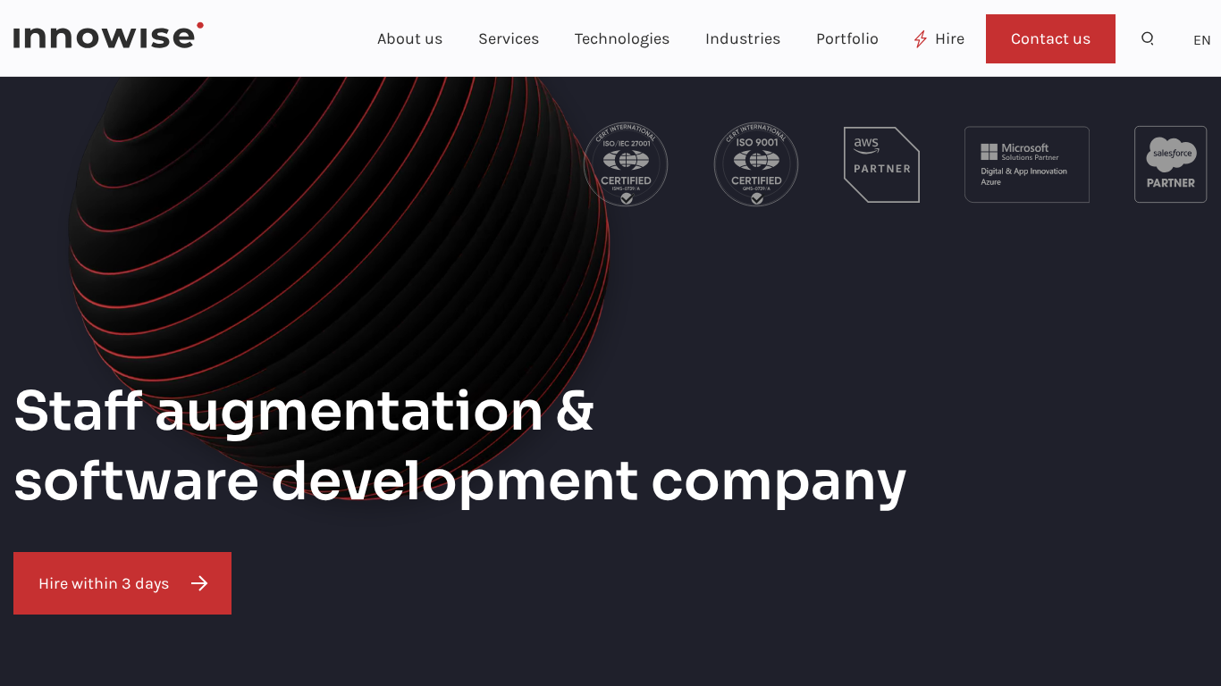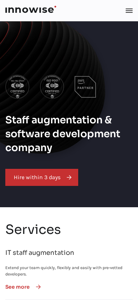| AI-анализ | This online resource represents Innowise ®, a trusted international software development company with over 2500 developers serving clients in the US, UK, and Europe. The company, founded in 2007, offers full-cycle software development services, IT consulting & advisory, web development, mobile development, embedded software development, custom software development, MVP development, cloud development, ERP development, mainframe support, legacy modernization, UI/UX design, 3D design, software testing and QA, security testing, database administration, DevOps, DevSecOps, network IT staff augmentation, dedicated team, advanced technologies implementation, big data, data management, data analytics, data engineering, data visualization, business intelligence, machine learning, artificial intelligence, data science, sustainability & ESG, digital transformation, business process automation, robotic process automation, cybersecurity, internet of things, block |