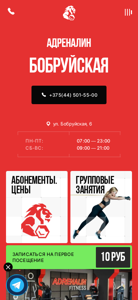 | AI-анализ | --- This online resource is a website for Adrenaline Fitness Center located in the Galileo shopping mall in Minsk, Belarus. The website offers information about the center's network of fitness clubs in the city, featuring affordable prices for fitness activities in modern training halls equipped with advanced gym equipment and experienced fitness instructors. The site provides details on various fitness programs, group classes, and contact information for booking appointments and inquiries. Visitors can also find information on current promotions and discounts, including the option to purchase an "Orange Card" for discounted rates. The site includes a section for trainers' profiles, as well as a calendar of upcoming classes and events. |