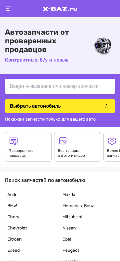 | Название / Заголовок | X-BAZ: Поиск автозапчастей по всей России! Контрактные, новые и Б/У запчасти в наличии и по выгодным ценам |