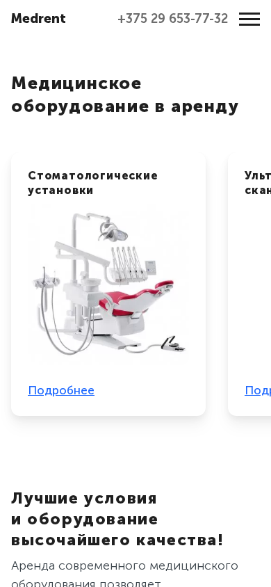| SEO-описание | Медицинское оборудование для стоматологических клиник и кабинетов ультразвуковой диагностики в аренду - Выгодные условия - Возможность аренды с выкупом - Звоните! ☎️ +375 29 653-77-32 |