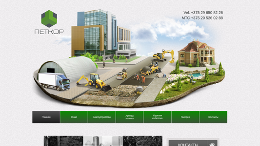 | SEO-описание | ОДО Петкор имеет большой опыт в благоустройстве и озеленении территории. Аренда строительной техники для строительства и благоустройства территории. Производит изделия из бетона. |