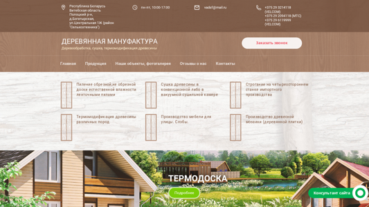 | SEO-описание | Наша компания занимается деревообработкой с 2011 года. Одними из первых на территории Республики Беларусь запустили производство термомодификации древесины. |