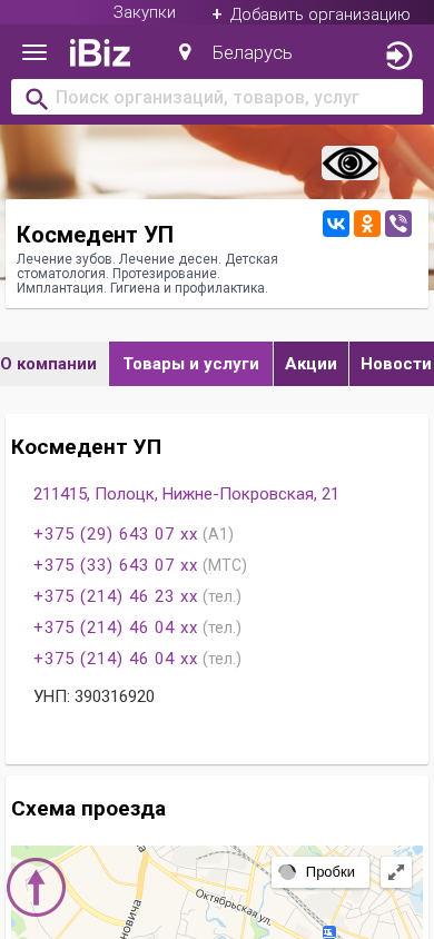 | Название / Заголовок | Космедент УП - Лечение зубов. Лечение десен. Детская стоматология. Протезирование. Имплантация. Гигиена и профилактика. . 211415, Полоцк, , Нижне-Покровская, 21 |