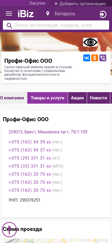 | Название / Заголовок | Профи-Офис ООО - Салон офисной мебели, кресел и стульев. Качество в сочетании с уникальным дизайном, функциональностью и надежностью.. 224013, Брест, , Машерова пр-т, 75/1-105 |