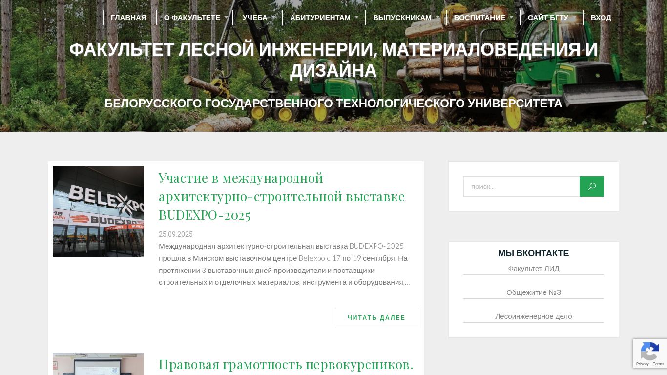 | AI-анализ | --- This online resource is dedicated to the Faculty of Forest Engineering, Material Science and Design at Belarusian State Technological University (Белорусский государственный технологический университет) in Minsk. The title of the website is "Faculty of Forest Engineering, Material Science and Design — LID" and the keywords include "БГТУ", "2025", "лид", "specialties", "read more", "further", "faculty", "students", "forest", "graphic", "course", "faculty's", "state", "college", "engineering", "material science", "design", "faculty's", "brochure", "groups", and various phrases related to the dean's office, housing, student council, tuition, scholarships, academic programs, and graduation. The website provides |