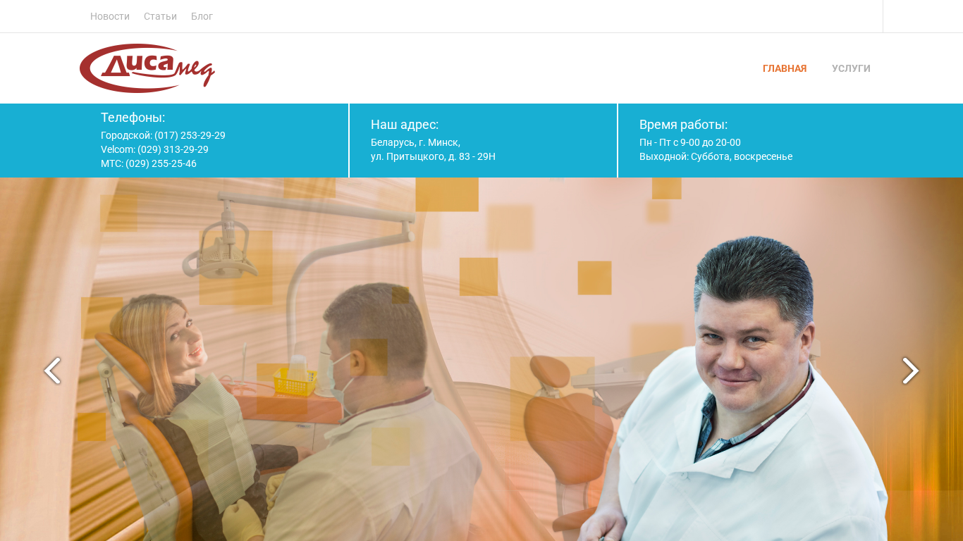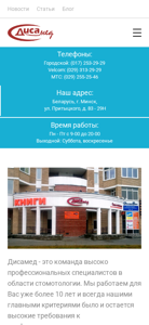 | AI-анализ | --- The portal Disamed.by is a dental clinic website. It offers various dental services including therapeutic dentistry, aesthetic dentistry, preventive dentistry, dental hygiene, tooth capping, orthopedic dentistry, and orthodontic dentistry. The clinic has been in operation for over 10 years and prides itself on its highly professional staff, quality services, and individual approach to each patient. The website provides telephone numbers for contact and working hours from Monday to Friday, 9 am to 8 pm, with weekends being an exception. The address of the clinic is in Minsk, Belarus. |