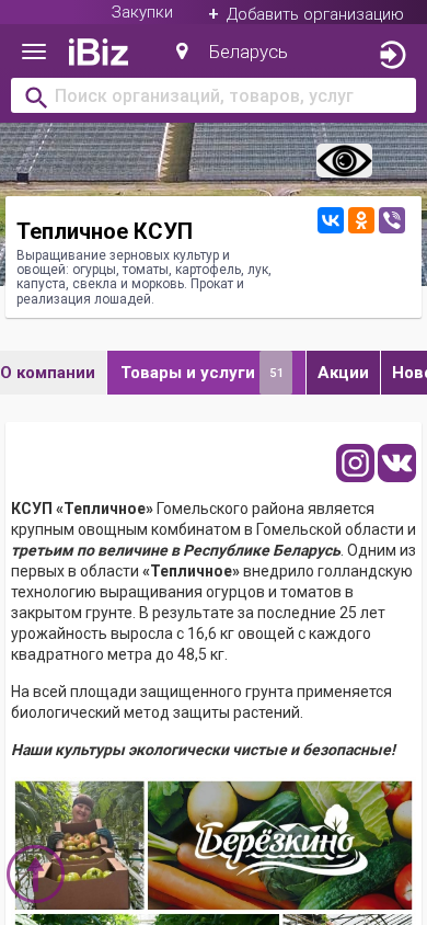 | Название / Заголовок | Тепличное КСУП - Выращивание зерновых культур и овощей: огурцы, томаты, картофель, лук, капуста, свекла и морковь. Прокат и реализация лошадей.. 247007, , Березки д. |