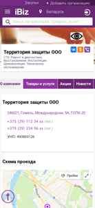 AI-анализ | The website is a business organization named Территория защиты ООО - СТО (Territory Protection LLC) based in Гомель, Belarus, located at Международная, 5А, ГСПК-20. The company offers various services including repair and diagnostics, restoration, installation, sound insulation, and technical servicing. The contact information and map for the organization are provided. The website also offers a section for free classified ads for purchasing and selling goods and services. The company specializes in stationary technical services. The operating hours are from 09:00 to 18:00, Monday through Friday, with Saturdays and Sundays being holidays. The company can be reached by phone at +375 (29) 112 34 xx or +375 (29) 234 |