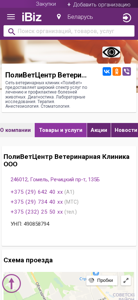 AI-анализ | This website is for Polivet Center Veterinary Clinic OOO, a network of veterinary clinics named 'Polivet' providing a wide range of services for animal healthcare and prevention of diseases. The services include diagnosis, laboratory tests, therapy, anesthesiology, and stomatology. The contact information, address, and map for reaching the company are available. The website also offers options to add the company to favorites, view company news, job vacancies, videos, and customer reviews on social media platforms. The company provides veterinary services and animal care, with no specified opening hours mentioned. The company's UNP number is 490858794. |