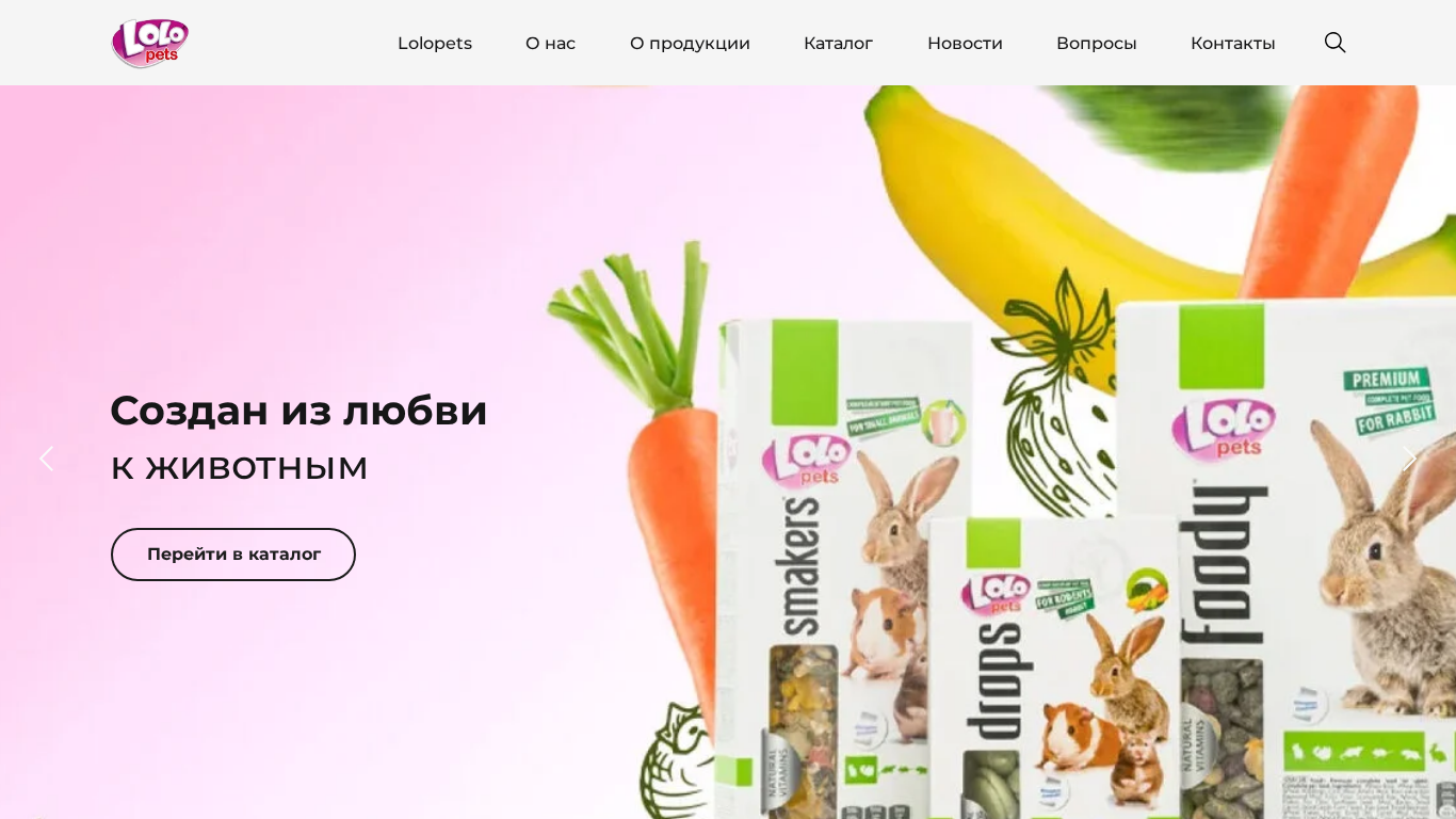 AI-анализ | The website Lolo Pets is an e-commerce platform selling premium pet food for rodents including rabbits, hamsters, hedgehogs, and sea pigs, with delivery available in Belarus. The main content of the site includes a catalog of products, information about the company, a FAQ section, and contacts. The company, Smikers, produces the pet food with handmade methods, natural ingredients, and airtight packaging, offering over 100 different flavors that distinguish it from other pet food brands. Lolo Pets has been in business for over 15 years and offers a catalog of over 400 items, with production in over 65 countries. The website also features news about hobbies and events, including the Hobby Meet Up 2023, a two-day event where over 60 clients from around the world met the company, and participation |
